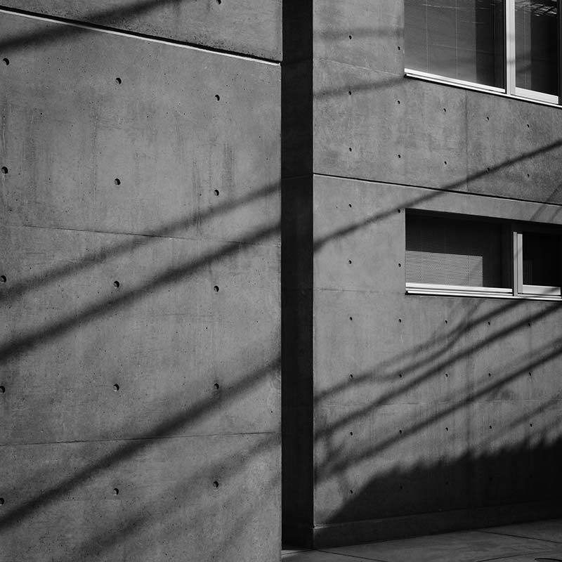冬特有の、空気が澄んだ晴れ日にできる、建物や電線の影に目がいった。